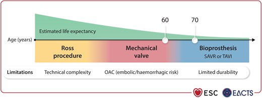 Η αντικατάσταση της αορτικής βαλβίδας μπορεί να γίνει είτε με μηχανική είτε με βιολογική βαλβίδα (ανθρώπινη, χοιρινή ή βόεια). Η βιολογική βαλβίδα προτιμάται σε μεγαλύτερους των 60 – 65 ετών αλλά και σε όσους μικρότερους δεν μπορεί να χορηγηθεί αντιπηκτική θεραπεία.